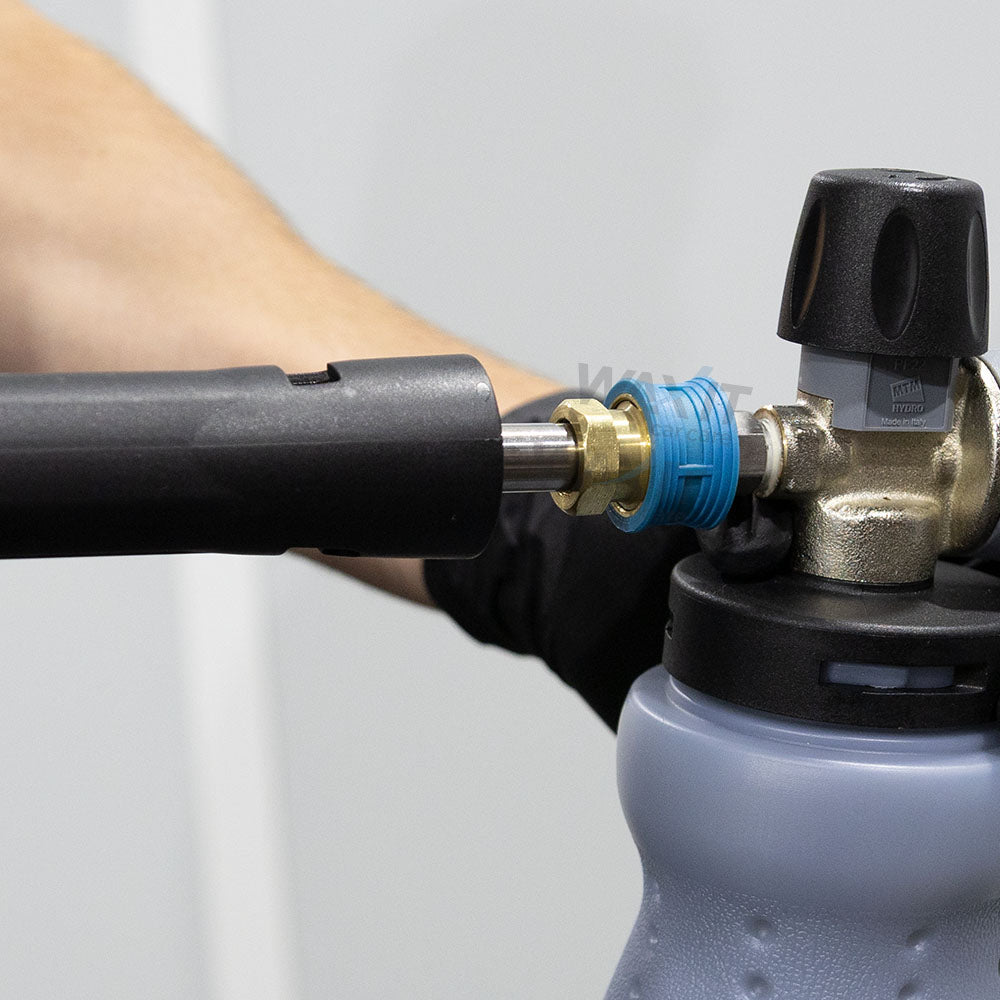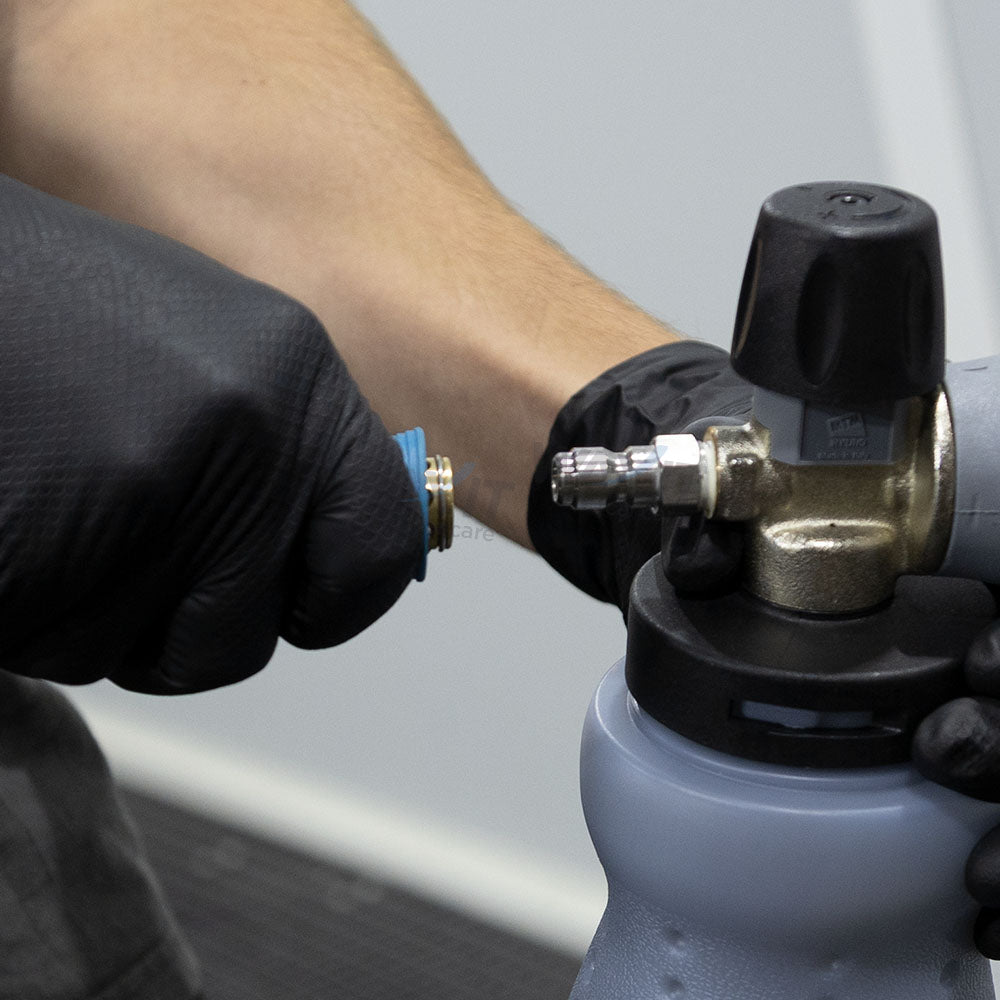 You’ll also get a 1L bottle of Nv SNOW, a pH-neutral maintenance foam that delivers thick coverage and excellent lubrication - perfect for regular washes and safe on all coatings. Choose your quick connect fitting to match your pressure washer and you're ready to foam.