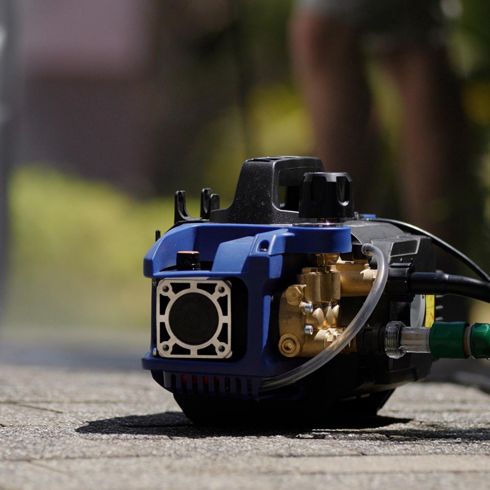 A quiet unit that packs quite a punch and I use with quick connects and a 50m hose that I already had.
