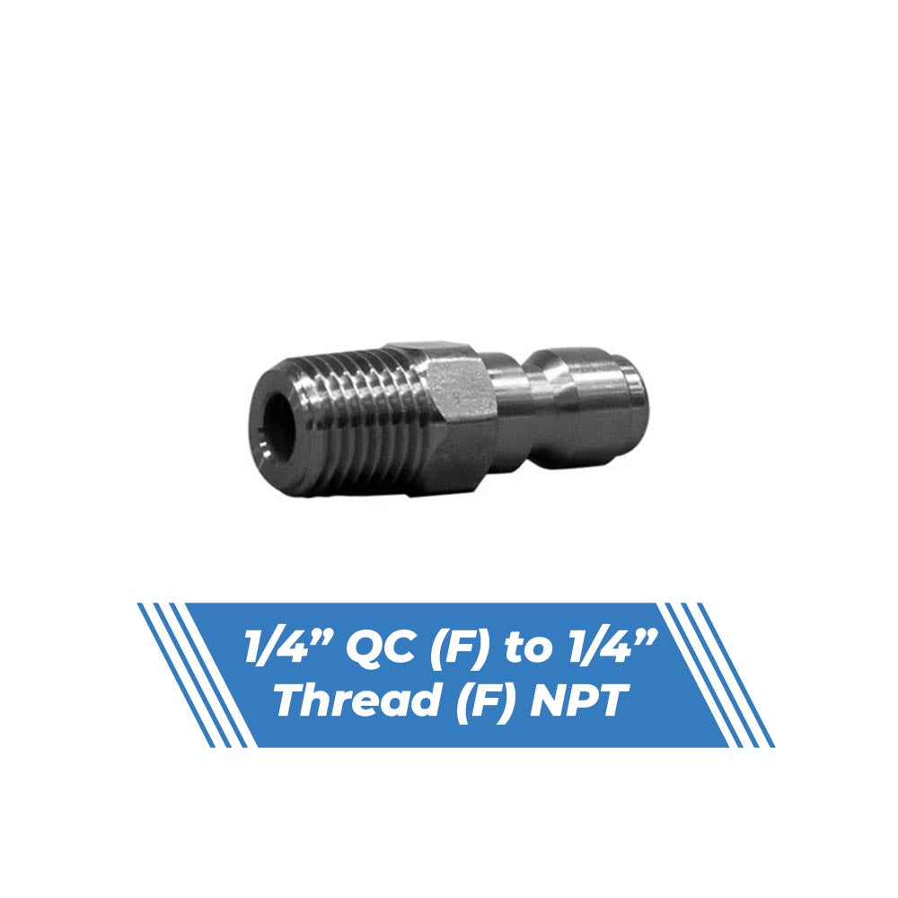 - QC to Threaded Adaptor: Converts a 1/4" female thread to a 1/4" male quick connect.