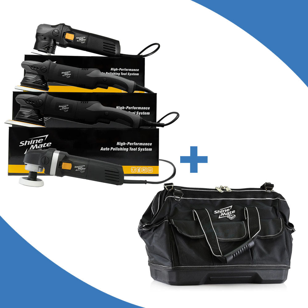 Part of our Buy One, Get One (BOGO) series – the Waxit Complete Corded Car Polisher Kit gives you every ShineMate machine you need to handle full paint correction from start to finish. Pick up this versatile polishing kit and receive a FREE 20" ShineMate Heavy Duty Tool Bag, keeping your machines, pads, and compounds protected and organised.